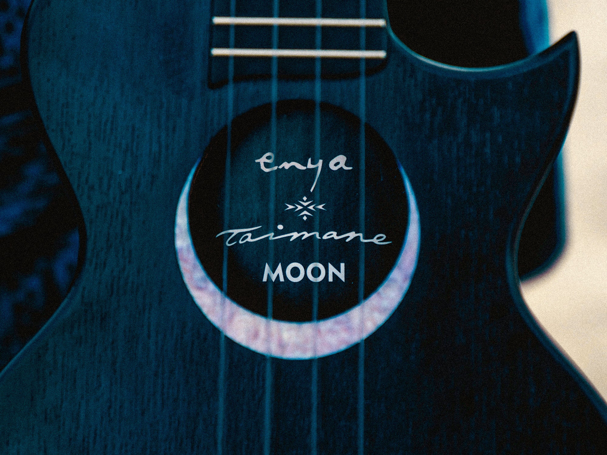 ' This ukulele represents the night sky. An abalone crescent moon cradles the sound hole. Iwa Birds on the fretboard will guide your fingers, and the night star on the crown of your ukulele will light the path to your musical soul. This signature ukulele represents who I am as an artist. Thank you for believing in me. ' —Taimane